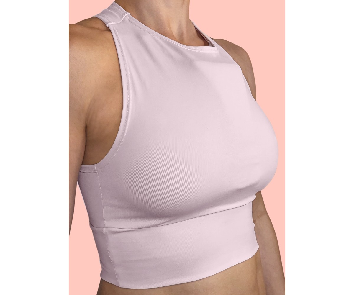 - O tecido firme e confortável mantém os seios no lugar e evita a flacidez mamária.