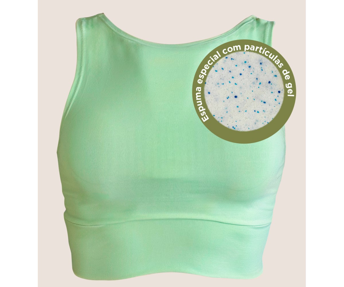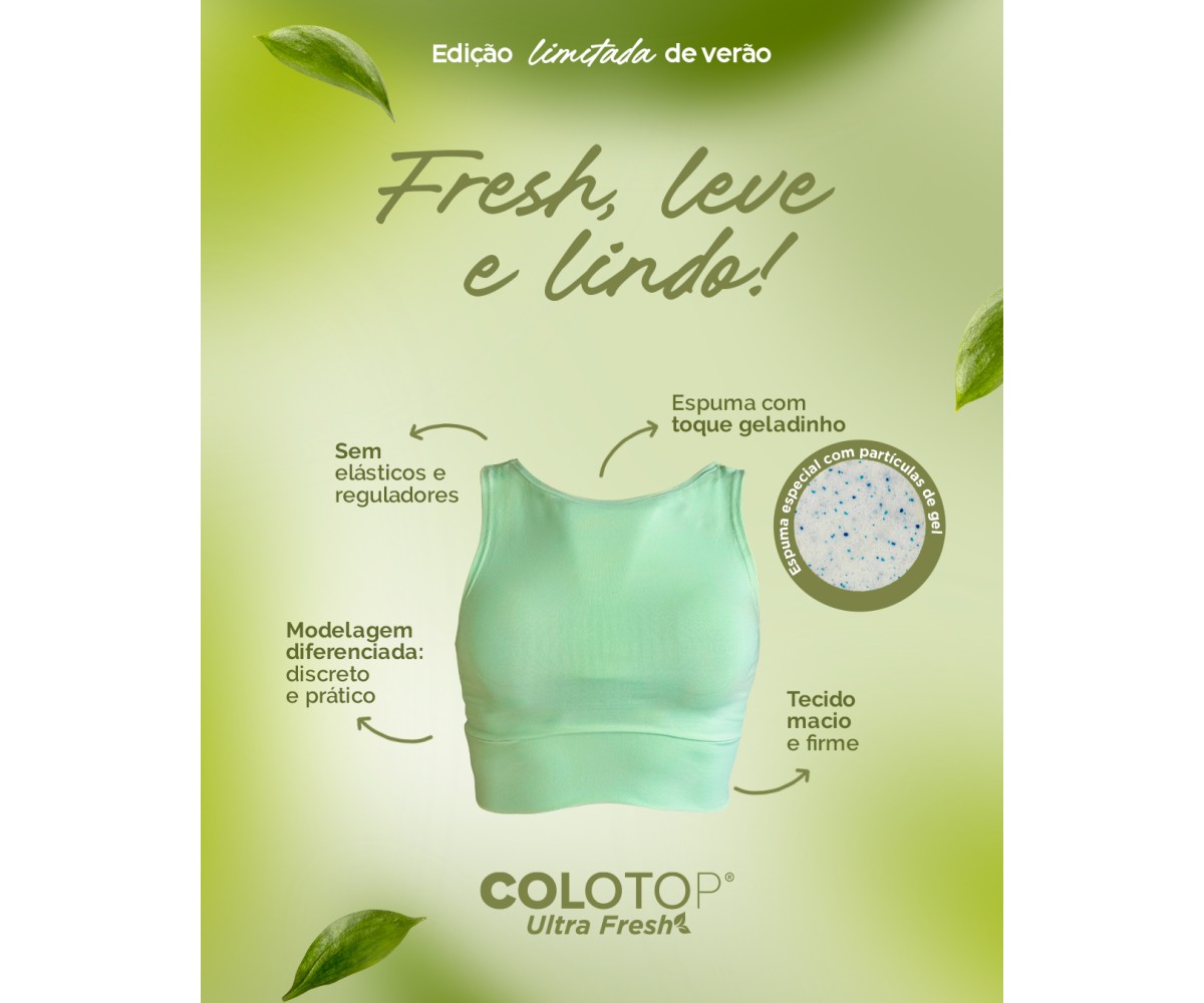 Top com espuma especial contendo esferas de gel = toque mais fresquinho na pele. Ultra confortável, sem elásticos nem reguladores. Tecido com toque macio e firme.