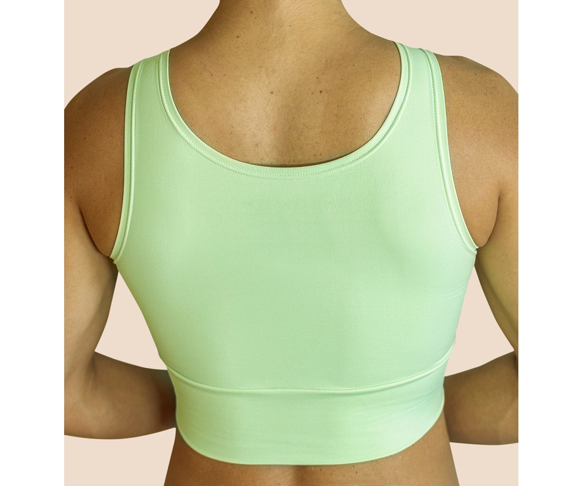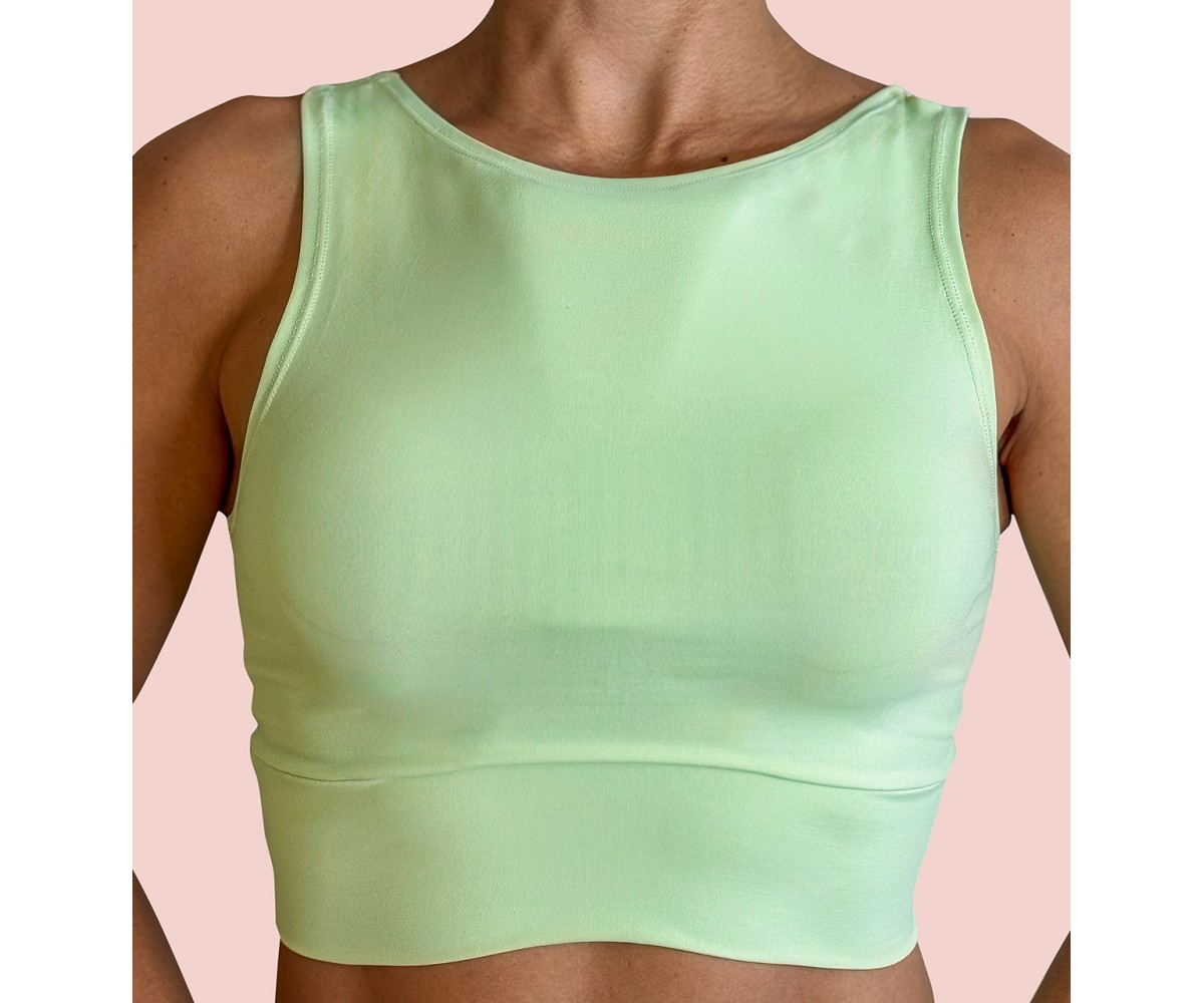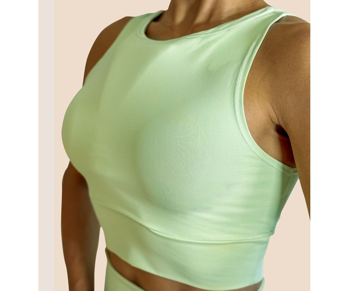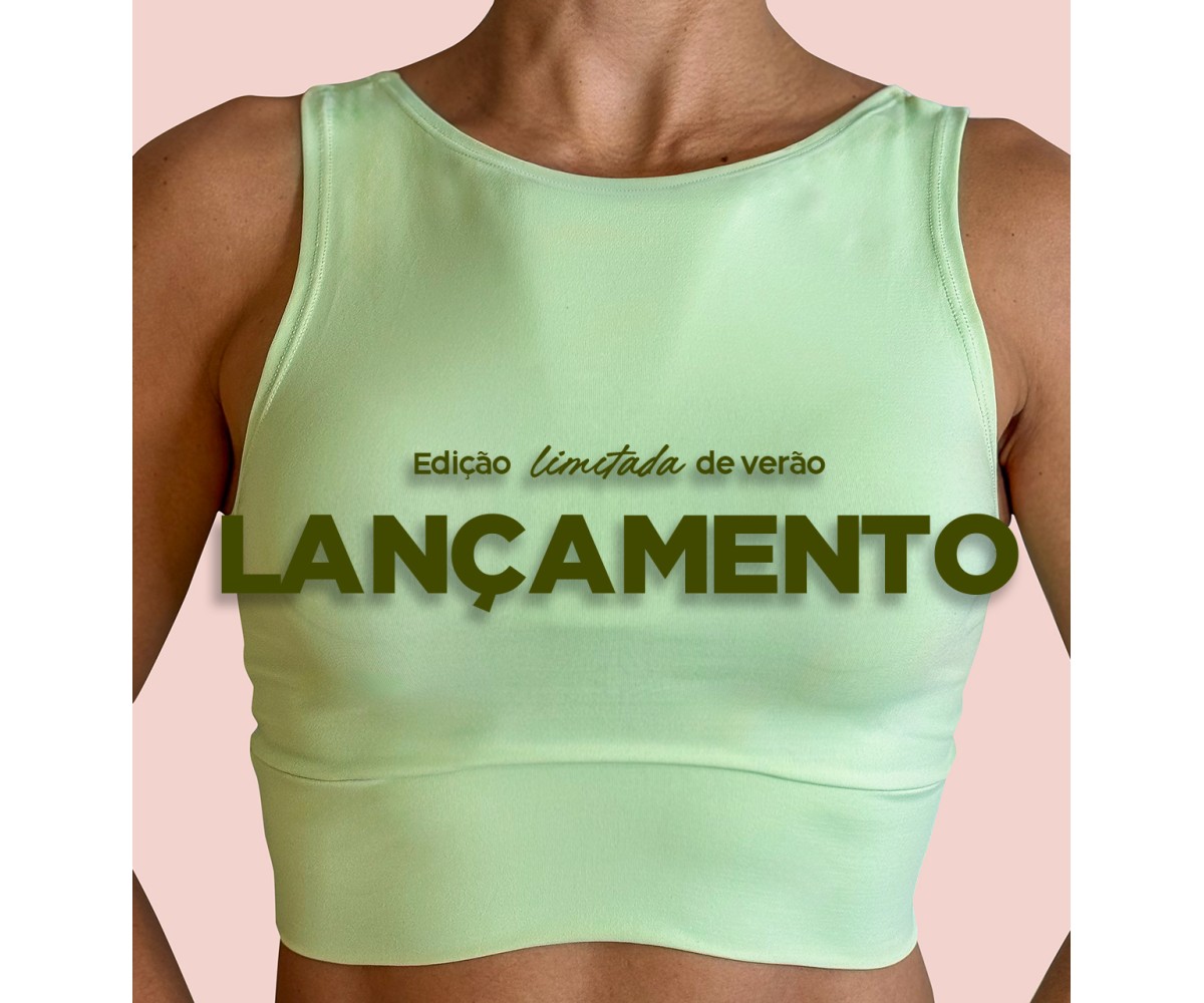 - O top tampa a espuma na frente e tem modelagem regata nas costas.