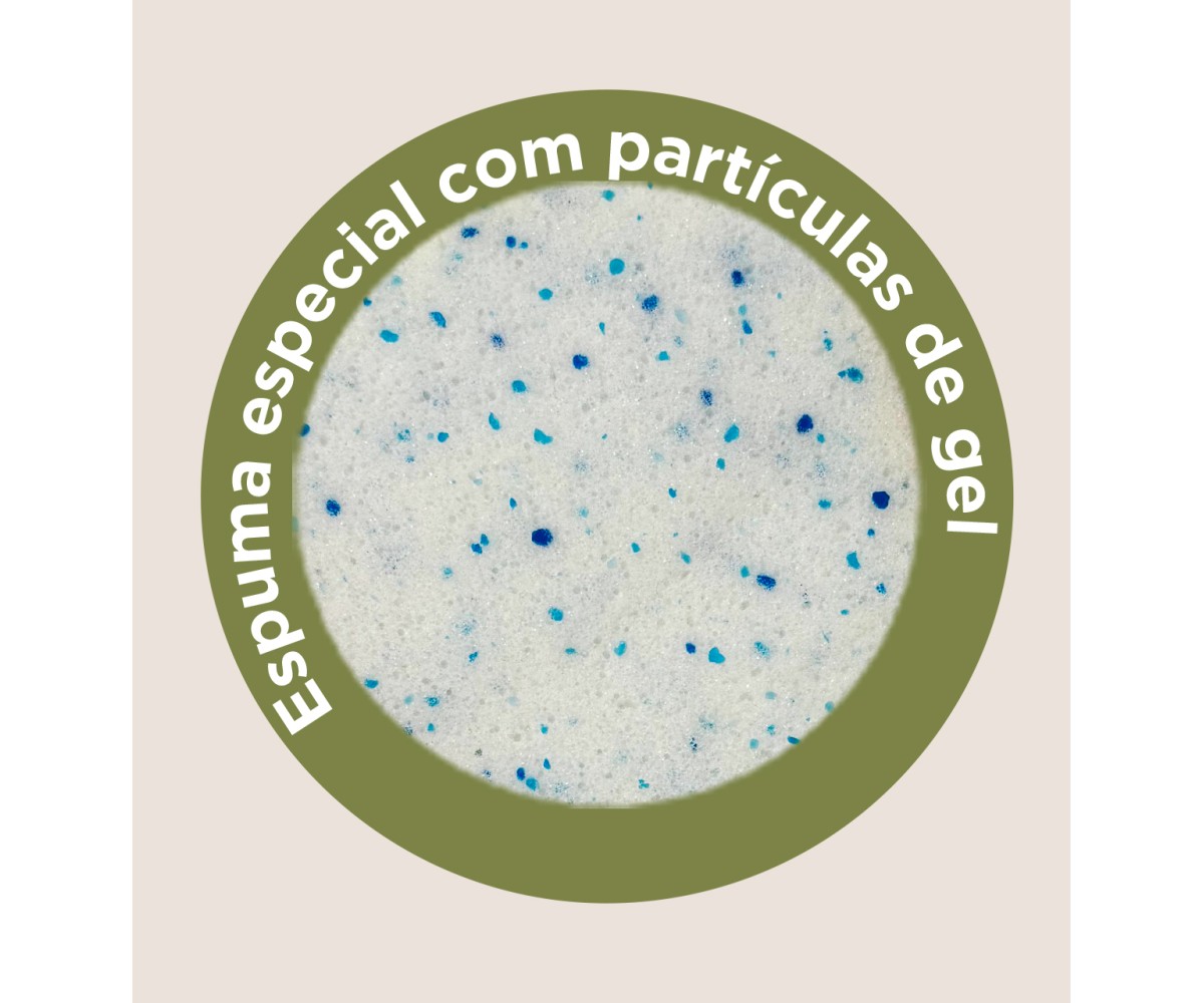 - E a grande novidade: espuma com partículas de gel que regulam a temperatura do produto, mantendo-o mais fresco e confortável para você. Além disso, a adição de partículas em gel à espuma ajuda a aumentar a durabilidade do produto.